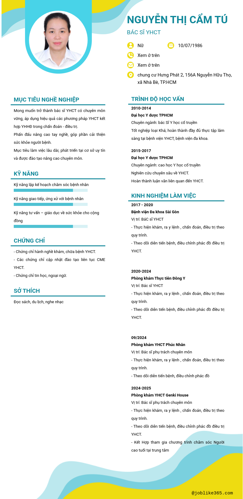 Xem hồ sơ ứng viên NGUYỄN THỊ CẨM TÚ cần 2 điểm. Hồ sơ được cập nhật ngày: 22/12/2025