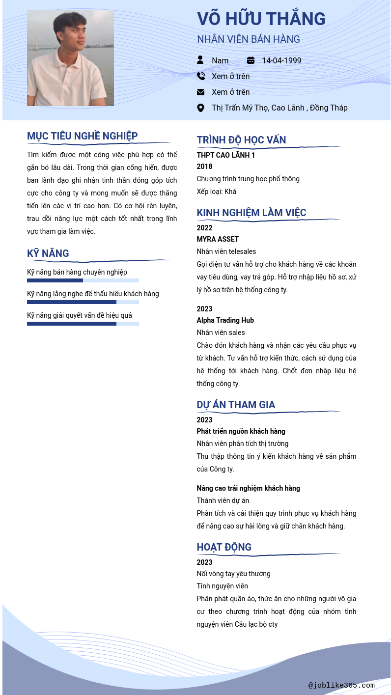 Xem hồ sơ ứng viên Võ Hữu Thắng cần 2 điểm. Hồ sơ được cập nhật ngày: 12/05/2025