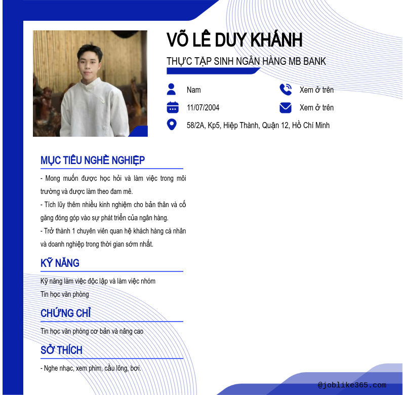 Xem hồ sơ ứng viên Võ lê duy khánh cần 2 điểm. Hồ sơ được cập nhật ngày: 15/06/2025
