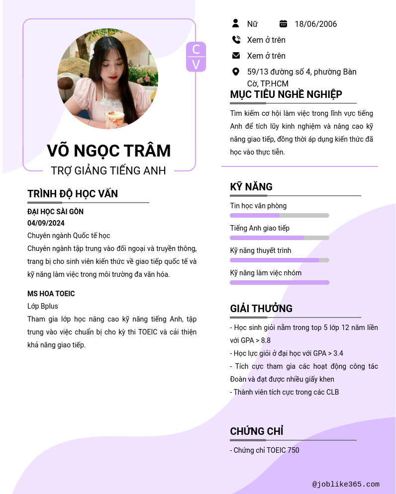 Chi tiết trong CV