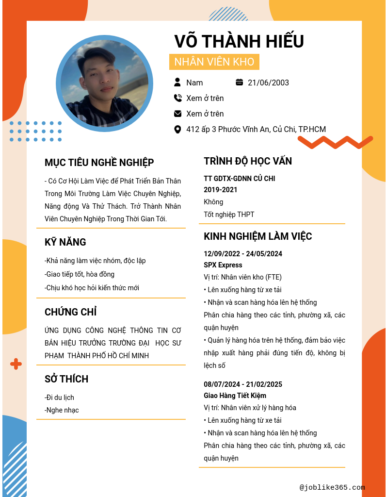 Xem hồ sơ ứng viên võ thành hiếu cần 2 điểm. Hồ sơ được cập nhật ngày: 01/07/2025