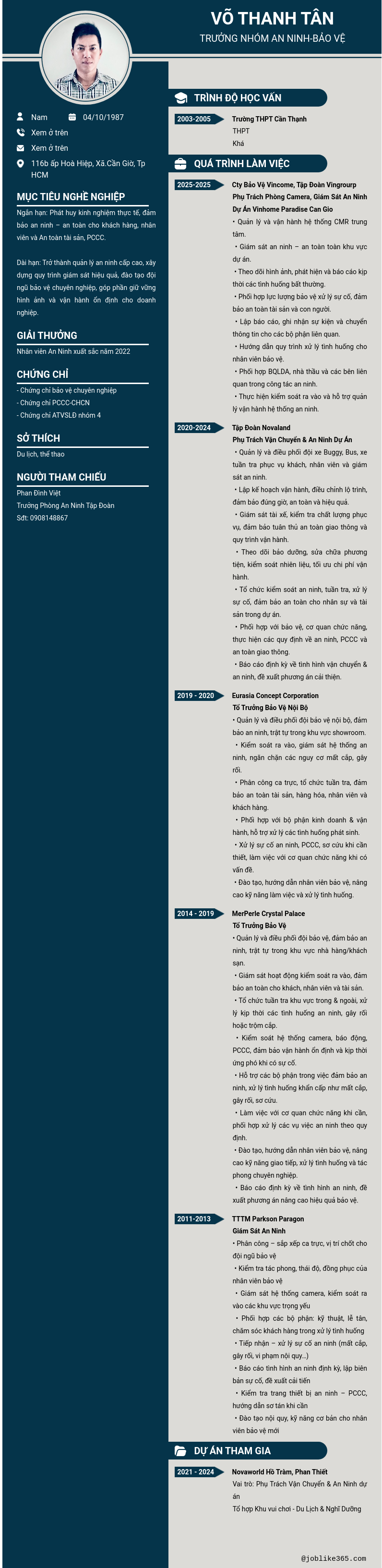 Xem hồ sơ ứng viên Võ Thanh Tân cần 2 điểm. Hồ sơ được cập nhật ngày: 23/10/2025
