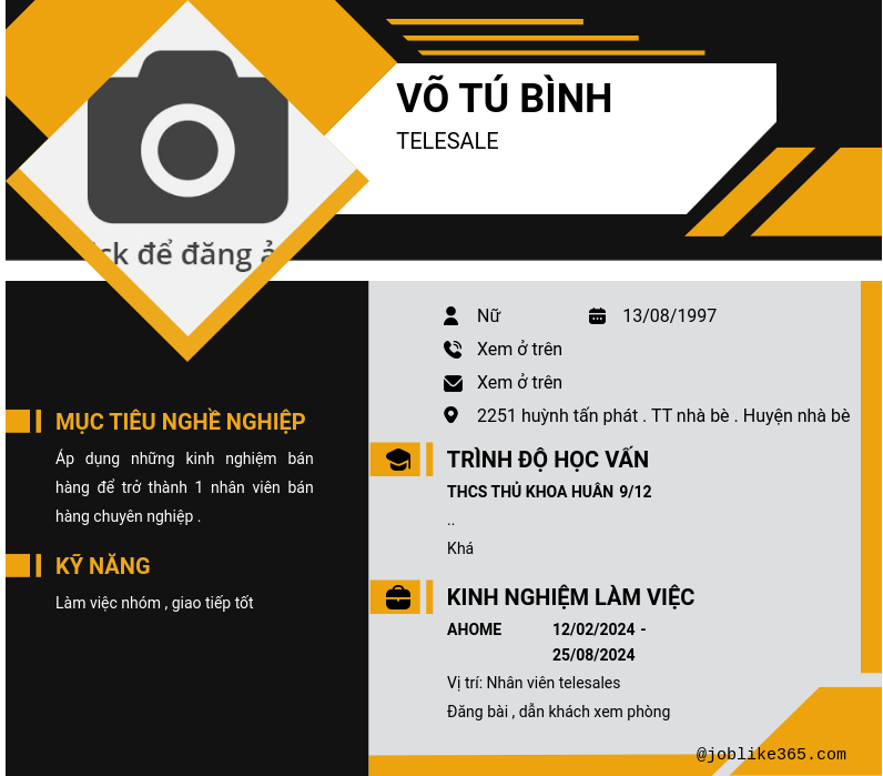 Xem hồ sơ ứng viên Võ Tú Bình cần 2 điểm. Hồ sơ được cập nhật ngày: 04/10/2024