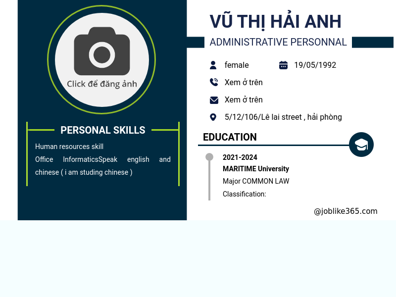 Xem hồ sơ ứng viên VŨ THỊ HẢI ANH cần 2 điểm. Hồ sơ được cập nhật ngày: 29/05/2024