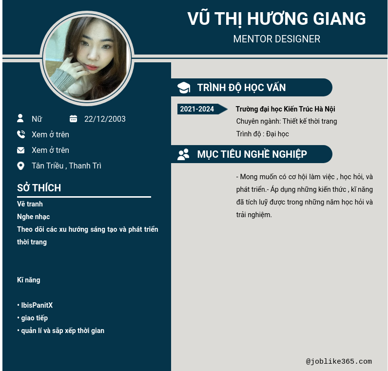Xem hồ sơ ứng viên Vũ Thị Hương Giang cần 2 điểm. Hồ sơ được cập nhật ngày: 04/08/2024