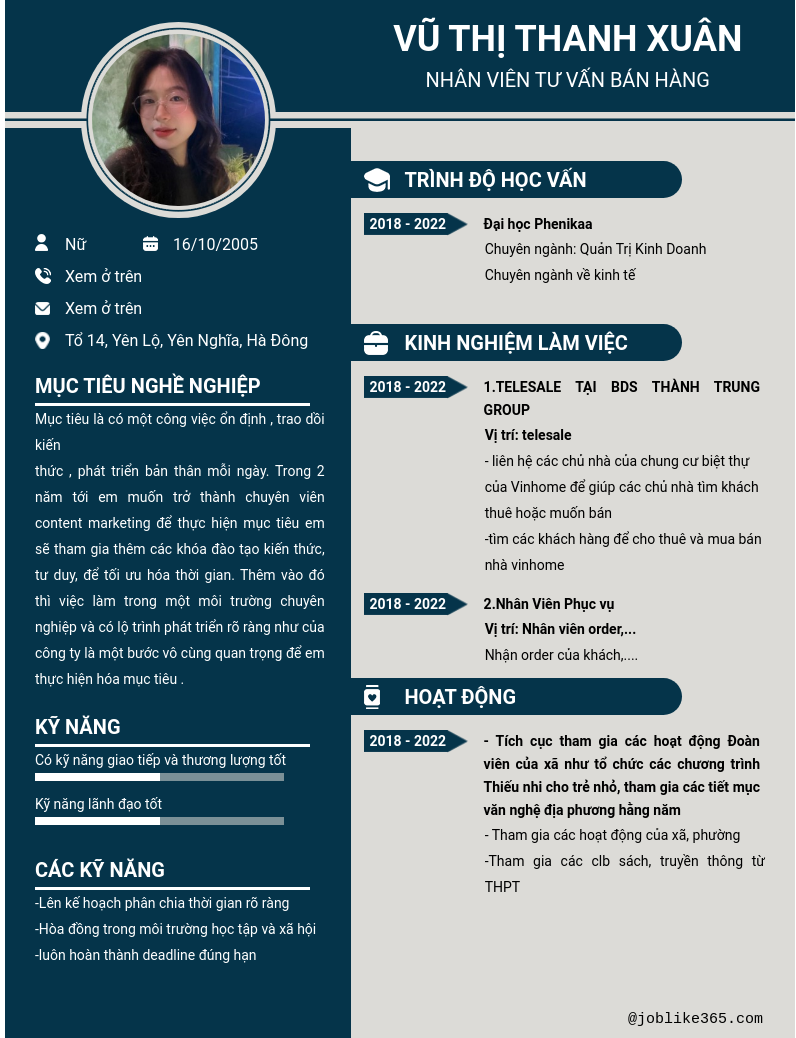 Xem hồ sơ ứng viên vũ thị thanh xuân cần 2 điểm. Hồ sơ được cập nhật ngày: 27/03/2025