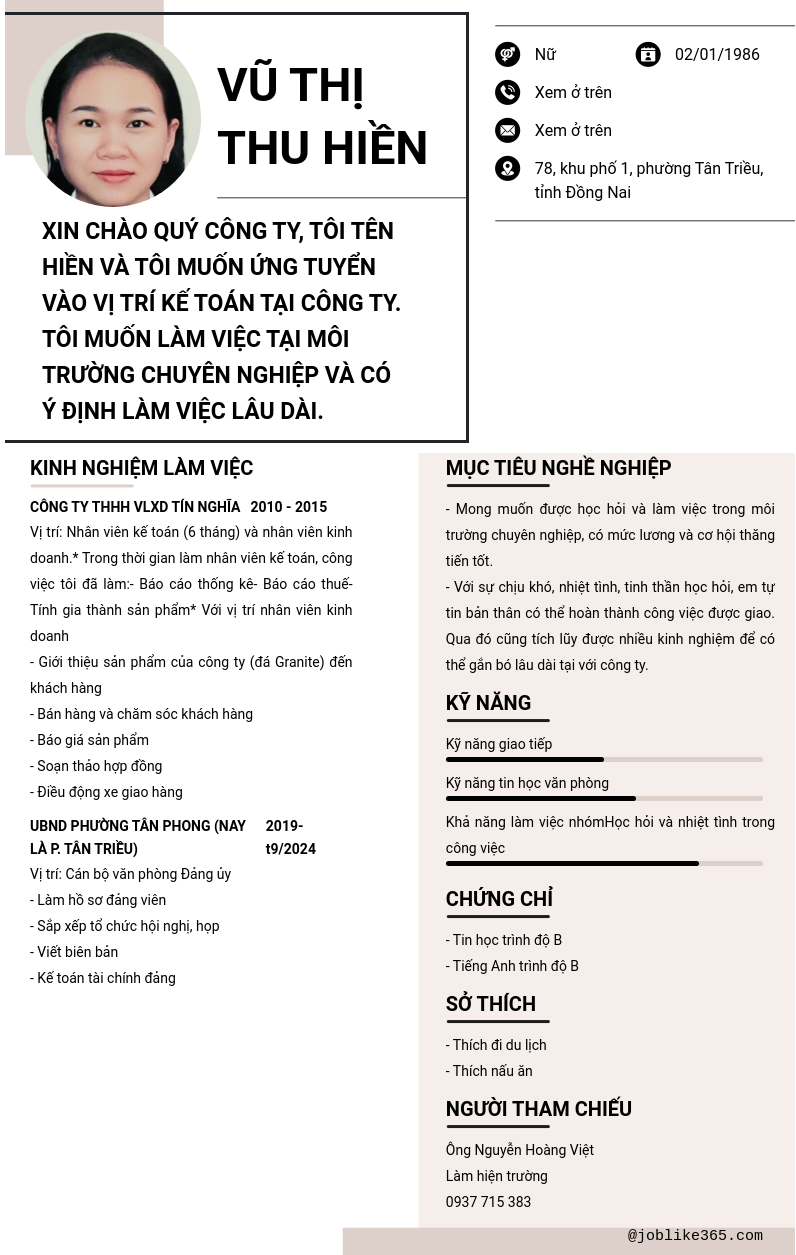 xin chào quý công ty, tôi tên hiền và tôi muốn ứng tuyển vào vị trí kế toán tại công ty. Tôi muốn làm việc tại môi trường chuyên nghiệp và có ý định làm việc lâu dài.