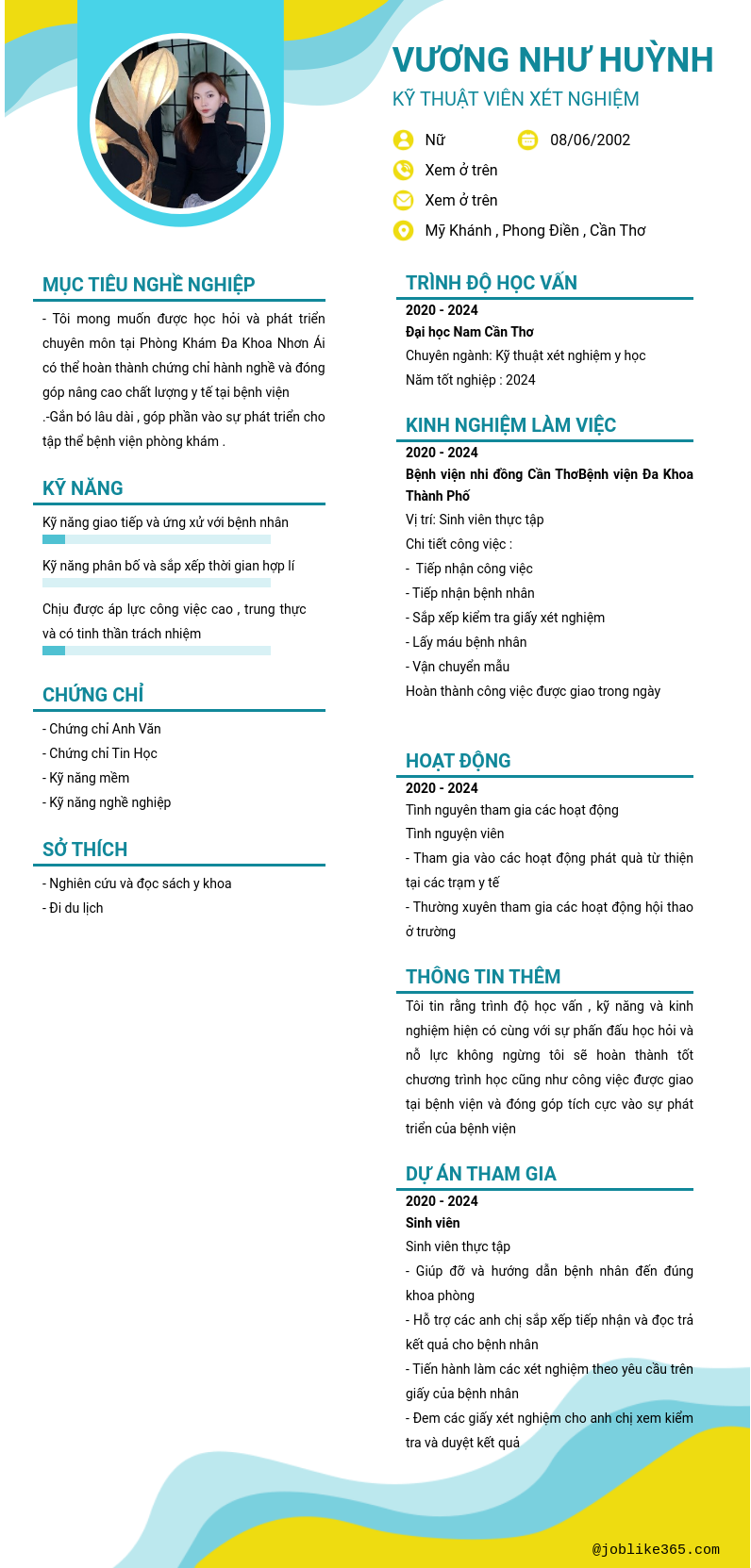 Xem hồ sơ ứng viên VƯƠNG NHƯ HUỲNH cần 2 điểm. Hồ sơ được cập nhật ngày: 15/08/2024
