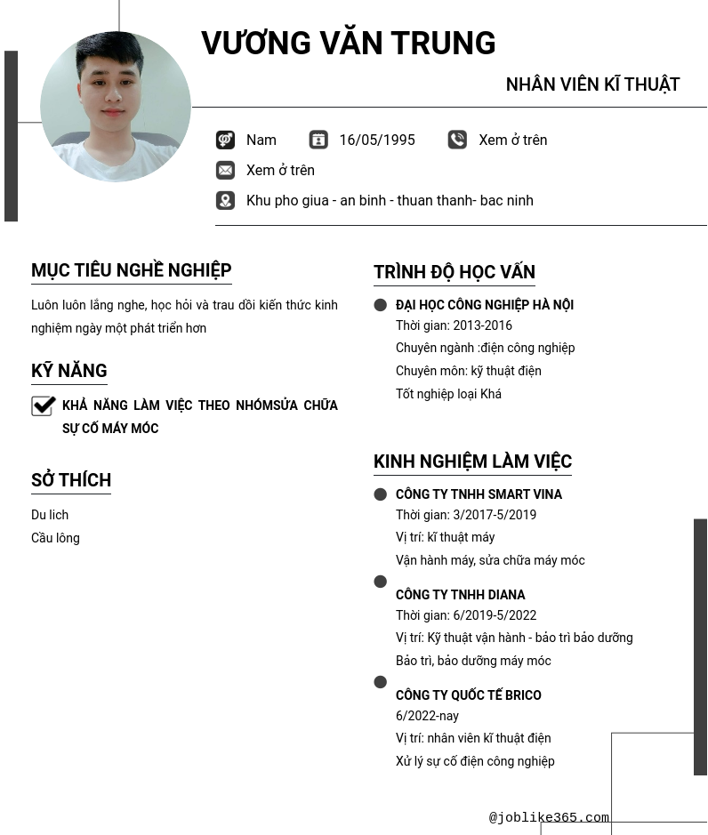 Xem hồ sơ ứng viên VƯƠNG VĂN TRUNG cần 2 điểm. Hồ sơ được cập nhật ngày: 23/09/2024
