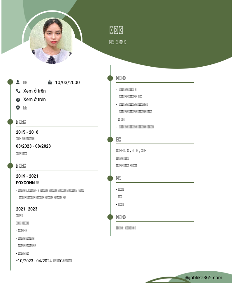 Xem hồ sơ ứng viên 韦氏梦 cần 2 điểm. Hồ sơ được cập nhật ngày: 15/11/2024
